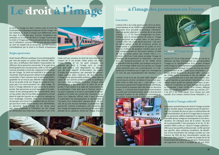 Cette mise en page représente un article dans un magazine concernant le droit à l'image.